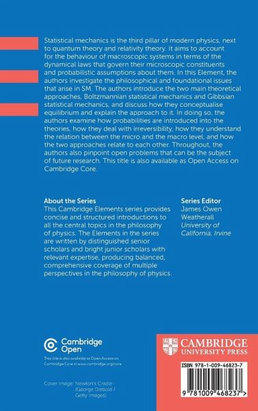 Statistical mechanics is the third pillar of modern physics, next to quantum theory and relativity theory. It aims to account for the behaviour of macroscopic systems in terms of the dynamical laws that govern their microscopic constituents and probabilistic assumptions about them. In this Element, the authors investigate the philosophical and foundational issues that arise in SM. The authors introduce the two main theoretical approaches in SM, Boltzmannian SM and Gibbsian SM, and discuss how they conceptualise equilibrium and explain the approach to it. In doing so, the authors examine how probabilities are introduced into the theories, how they deal with irreversibility, how they understand the relation between the micro and the macro level, and how the two approaches relate to each other. Throughout, the authors also pinpoint open problems that can be subject of future research. This title is also available as Open Access on Cambridge Core.