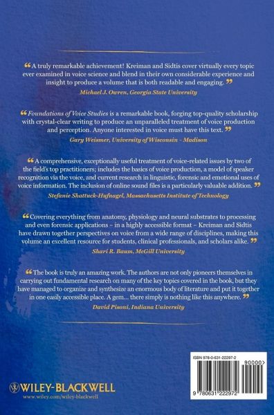 "Foundations of Voice Studies is a remarkable book, forging top-quality scholarship with crystal-clear writing to produce an unparalleled treatment of voice production and perception. Anyone interested in voice must have this text." Gary Weismer, University of Wisconsin-Madison