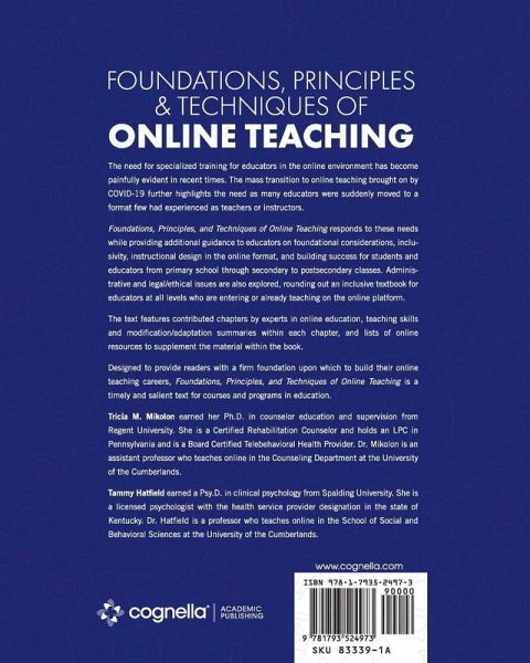 "The need for specialized training for educators in the online environment has become painfully evident in recent times. The mass transition to online teaching brought by COVID-19 further highlights the need as many educators were suddenly moved to a format few had experienced as teachers or instructors. Foudations, Principles, and Techniques of Online Teaching responds to these needs while providing additional guidance to educators on foundational considerations, inclusivity, instructional design in the online format, and building success for students and educators from primary school through secondary to postsecondary classes. Administration and legal/ethical issues are also explored, rounding out an inclusive textbook for educators at all levels who are entering or already teaching on the online platform." -- Publisher's description