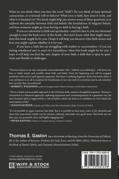 What do you think when you hear the word ""faith""? Do you think of deep spiritual connections, or irrational will-to-believe? What even is faith, how does it work, and what is it founded on? This book might help you answer some of these questions, as it explores the interplay between faith and beliefs, the foundations of religious beliefs, and how someone might go from having no faith to having a faith. If you are interested in faith and spirituality--and let's face it, you are interested enough to read the back cover of this book--but don't know what that might mean, then this book might be for you. I hope it will help you discover what faith means and how you might explore whether it is for you. If you have a faith but are struggling with doubts or uncertainties--if you are feeling untethered and in need of a foundation--then this book might be for you. I hope it will help you find the next chapter of your faith, a faith that is open to questions and flexible to challenges.