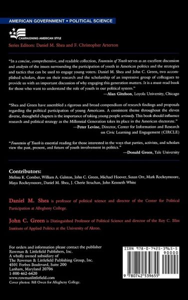 Fountain of Youth examines the tactics and the strategies for youth mobilization. While the central focus of the book is on the role of local political parties in registering and getting young voters to the polls, the editors and contributors examine a broad range of possible_and long-term_solutions.