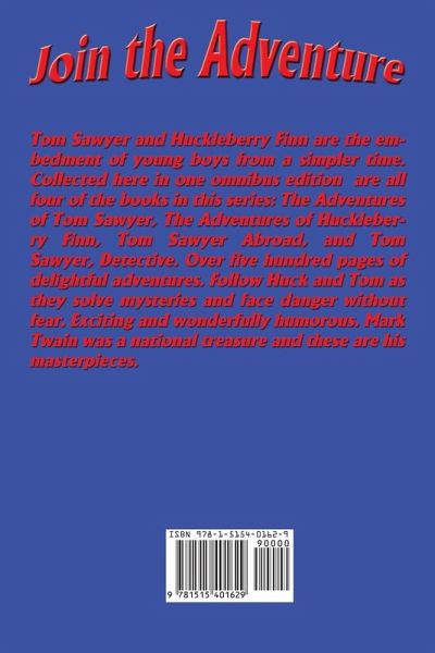 Tom Sawyer and Huckleberry Finn are the embedment of young boys from a simpler time. Collected here in one omnibus edition are all four of the books in this series: The Adventures of Tom Sawyer, The Adventures of Huckleberry Finn, Tom Sawyer Abroad, and Tom Sawyer, Detective. Over five hundred pages of delightful adventures. Follow Huck and Tom as they solve mysteries and face danger without fear. Exciting and wonderfully humorous. Mark Twain was a national treasure and these are his masterpieces.