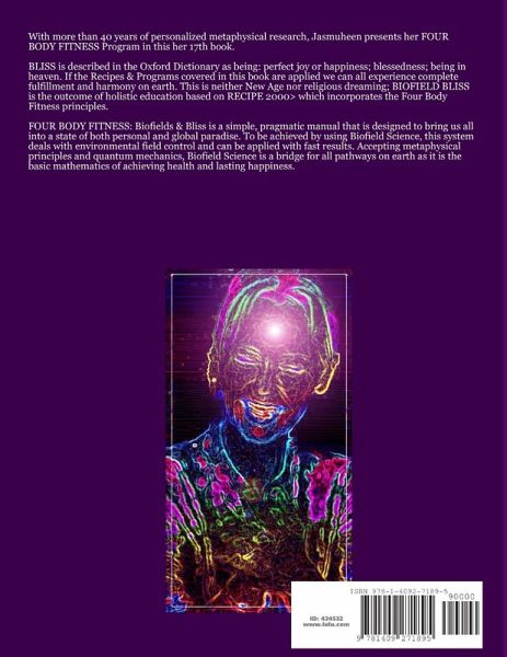 With more than 40 years of personalized metaphysical research, Jasmuheen presents her FOUR BODY FITNESS Program in this her 17th book. BLISS is described in the Oxford Dictionary as being: perfect joy or happiness; blessedness; being in heaven. If the Recipes & Programs covered in this book are applied we can all experience complete fulfillment and harmony on earth. This is neither New Age nor religious dreaming; BIOFIELD BLISS is the outcome of holistic education based on RECIPE 2000> which incorporates the Four Body Fitness principles. FOUR BODY FITNESS: Biofields & Bliss is a simple, pragmatic manual that is designed to bring us all into a state of both personal and global paradise. To be achieved by using Biofield Science, this system deals with environmental field control and can be applied with fast results. Accepting metaphysical principles and quantum mechanics, Biofield Science is a bridge for all pathways on earth as it is the basic mathematics of achieving health and lasting happiness.