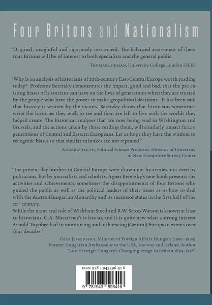 Up to this day nationalism has remained a powerful and durable phenomenon: nations in East-Central Europe and beyond have not only survived into but even thrived in the twenty-first century, while their deeply ingrained nationalism has remained incomprehensible to the West. This is despite the fact that the region has been a hotbed of ethnic conflict, where two world wars have started, and where even today (in 2024) there is no peace. The four Britons profiled in this volume were among the few Westerners who made a sincere effort to understand the nationalist spirit which has historically played such an important role in the region. These influential journalists and scholars were; Robert William Seton-Watson, the much-celebrated historian of East-Central Europe, the influential Vienna correspondent and later editor-in-chief of The Times (London), Henry Wickham Steed, as well as the world-renowned scholar and Director of the Royal Institute of International Affairs, Arnold Joseph Toynbee, and the British Foreign Office-expert on minorities and Hungary, Carlile Aylmer Macartney. All four lived in East-Central Europe for a time and learned its language(s). Drawing on a vast amount of archival material, this book outlines Seton-Watson's, Steed's and Toynbee's pre-1920-activities that were rooted in the belief that national self-determination would provide "one cure for all". The volume then focuses on nationalism within the Successor States of Austria-Hungary during the interwar period and World War II. In this work, Ágnes Beretzky's research shows that once post-WWI events demonstrated the weakness of the small nation-state system, only Toynbee came to reconsider his earlier stance, whereas Steed and Seton-Watson remained avowed apologists of the territorial status quo they had helped create. Beretzky's valuable book provides us with evidence of the long-term problems caused by the rush to establish small national entities out of the break-up of the Austro-Hungarian Monarchy at the end of World War I. The resulting destabilization of the "sick Heart of Europe", created consequences that the world lives with to this day.