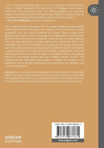Four Caribbean Women Playwrights aims to expand Caribbean and postcolonial studies beyond fiction and poetry by bringing to the fore innovative women playwrights from the French Caribbean: Ina Césaire, Maryse Condé, Gerty Dambury, Suzanne Dracius. Focussing on the significance of these women writers to the French and French Caribbean cultural scenes, the author illustrates how their work participates in global trends within postcolonial theatre. The playwrights discussed here all address socio-political issues, gender stereotypes, and the traumatic slave and colonial pasts of the Caribbean people. Investigating a range of plays from the 1980s to the early 2010s, including some works that have not yet featured in academic studies of Caribbean theatre, and applying theories of postcolonial theatre and local Caribbean theatre criticism, Four Caribbean Women Playwrights should appeal to scholars and students in the Humanities, and to all those interested in the postcolonial, the Caribbean, and contemporary theatre.