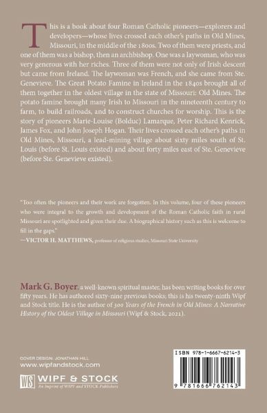 This is a book about four Roman Catholic pioneers--explorers and developers--whose lives crossed each other's paths in Old Mines, Missouri, in the middle of the 1800s. Two of them were priests, and one of them was a bishop, then an archbishop. One was a laywoman, who was very generous with her riches. Three of them were not only of Irish descent but came from Ireland. The laywoman was French, and she came from Ste. Genevieve. The Great Potato Famine in Ireland in the 1840s brought all of them together in the oldest village in the state of Missouri: Old Mines. The potato famine brought many Irish to Missouri in the nineteenth century to farm, to build railroads, and to construct churches for worship. This is the story of pioneers Marie-Louise (Bolduc) Lamarque, Peter Richard Kenrick, James Fox, and John Joseph Hogan. Their lives crossed each other's paths in Old Mines, Missouri, a lead-mining village about sixty miles south of St. Louis (before St. Louis existed) and about forty miles east of Ste. Genevieve (before Ste. Genevieve existed).