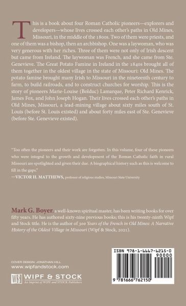 This is a book about four Roman Catholic pioneers--explorers and developers--whose lives crossed each other's paths in Old Mines, Missouri, in the middle of the 1800s. Two of them were priests, and one of them was a bishop, then an archbishop. One was a laywoman, who was very generous with her riches. Three of them were not only of Irish descent but came from Ireland. The laywoman was French, and she came from Ste. Genevieve. The Great Potato Famine in Ireland in the 1840s brought all of them together in the oldest village in the state of Missouri: Old Mines. The potato famine brought many Irish to Missouri in the nineteenth century to farm, to build railroads, and to construct churches for worship. This is the story of pioneers Marie-Louise (Bolduc) Lamarque, Peter Richard Kenrick, James Fox, and John Joseph Hogan. Their lives crossed each other's paths in Old Mines, Missouri, a lead-mining village about sixty miles south of St. Louis (before St. Louis existed) and about forty miles east of Ste. Genevieve (before Ste. Genevieve existed).