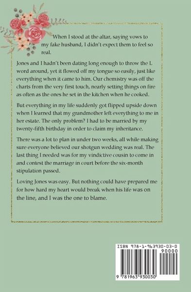 When I stood at the altar, saying vows to my fake husband, I didn't expect them to feel so real. Jones and I hadn't been dating long enough to throw the L word around, yet it flowed off my tongue so easily, just like everything when it came to him. Our chemistry was off the charts from the very first touch, nearly setting things on fire as often as the ones he set in the kitchen when he cooked. But everything in my life suddenly got flipped upside down when I learned that my grandmother left everything to me in her estate. The only problem? I had to be married by my twenty-fifth birthday in order to claim my inheritance. There was a lot to plan in under two weeks, all while making sure everyone believed our shotgun wedding was real. The last thing I needed was for my vindictive cousin to come in and contest the marriage in court before the six-month stipulation passed. Loving Jones was easy. But nothing could have prepared me for how hard my heart would break when his life was on the line, and I was the one to blame.