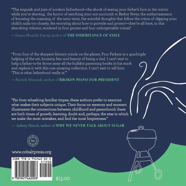 A collection of flash fiction (Tanzer), bookend short stories (Williams), a novella (Housley), and poetry written from father to daughter (Pawelek), Four Fathers is a hard-hitting definitive work that seeks to uncover what it takes to be a parent. These subjects are not easy, and through these introspective fathers, often agonized by the daily tensions of care-taking, we come to appreciate our own experiences more fully, or, at least prepare ourselves for what may lie ahead. Four Fathers, and each of its authors, delivers fatherhood in a multitude of thought-provoking, heartfelt ways: from Tom Williams' pair of long short stories which define a man by who he is as a son in relation to his father, and who he is as a father in relation to his son; to BL Pawelek's poetry, dedicated to his daughter, Abbey Road. Then you have Ben Tanzer's flash fiction pieces, which all seem to reflect up on the idea of "I'm a dad...what the heck do I do now?" and Dave Housley's novella begging the Osbornesque question "What the f*** is a 'Bieber?'" ADVANCE PRAISE: "Nothing can prepare us for the heart-wrenching mess that being a parent entails, but these stories and poems about fatherhood make me feel less lonely in the endeavor. At times gut-busting hilarious, devastating to the point of tears, and just plain beautiful, I'm so grateful this collection is in the world." -Paula Bomer, author of NINE MONTHS and INSIDE MADELEINE "FOUR FATHERS made me want to impregnate my wife all over again. Becoming a dad wouldn't be half as stressful with these powerful voices in my ear. From four of the sharpest literary minds on the planet, FOUR FATHERS is a quadruple helping of the wit, honesty, fear and beauty of being a dad. I can't wait to help a father-to-be throw away all the bullshit parenting books in his stack and replace it with this one amazing collection. I can't wait to tell him: 'This is what fatherhood really is.'" -Patrick Wensink, bestselling author of BROKEN PIANO FOR PRESIDENT "What a remarkable debut from Cobalt Press! This impressive collection of fiction and poetry is as varied in form as it is in content. But no matter the subject, one thing remains consistent throughout: these four authors shine a brilliant light onto one of the central conundrums of contemporary fatherhood, exploring what it means to be a man who is at once a role model, a law giver, a boo-boo soother (in short: this huge figure in his child's life) and yet also struggles to feel like a competent, responsible, stable grown-up. In language that will have you simultaneously chuckling and tearing up, Four Fathers gets to the heart of what it means to be a dad today." -- Brian Gresko, Editor of WHEN I FIRST HELD YOU "Replete with fathers, sons, daughters, fairy tales, gunfire and Justin Bieber songs, FOUR FATHERS is a collection that resonates not just with parents, but with anyone who has ever felt the burning pull of unconditional love. Far from rehashing familiar tropes, these authors prefer to examine what makes their subjects unique. Their focus on memory and moment illuminates the connections between childhood and parenthood: these are both times of growth, learning, doubt and, perhaps, the eras in which we make the most mistakes, and find the most forgiveness." -Aubrey Hirsch, author of WHY WE NEVER TALK ABOUT SUGAR "The anguish and joys of modern fatherhood - the shock of seeing your father's face in the mirror while you're shaving, the horror of watching your son succumb to Bieber Fever, the embarrassment of knowing the meaning of the term venti, the suicidal thoughts that follow the crime of clipping your child's nails too closely, the worrying about how to provide and protect - they're all here, in this absorbing volume, rendered in four genres and four unforgettable voices." -Susan Muaddi D