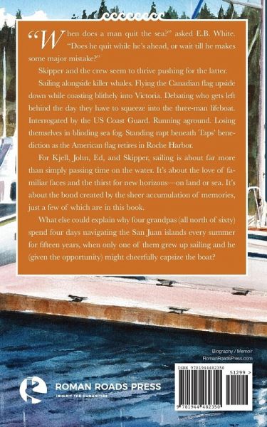 "When does a man quit the sea?" asked E.B. White. "Does he quit while he's ahead, or wait till he makes some major mistake?" Skipper and the crew seem to thrive pushing for the latter. Sailing alongside killer whales. Flying the Canadian flag upside down while coasting blithely into Victoria. Debating who gets left behind the day they have to squeeze into the three-man lifeboat. Interrogated by the US Coast Guard. Running aground. Losing themselves in blinding sea fog. Standing rapt beneath Taps' benediction as the American flag retires in Roche Harbor. For Kjell, John, Ed, and Skipper, sailing is about far more than simply passing time on the water. It's about the love of familiar faces and the thirst for new horizons-on land or sea. It's about the bond created by the sheer accumulation of memories, just a few of which are in this book. What else could explain why four grandpas (all north of sixty) spend four days navigating the San Juan islands every summer for fifteen years, when only one of them grew up sailing and he (given the opportunity) might cheerfully capsize the boat?