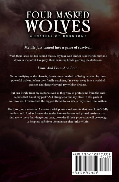 My life just turned into a game of survival. With their faces hidden behind masks, my four wolf-shifter best friends hunt me down in the forest like prey, their haunting howls piercing the darkness. I run. And I run. And I run. Yet as terrifying as the chase is, I can't deny the thrill of being pursued by these powerful wolves. When they finally catch me, I'm swept away into a world of passion and danger beyond my wildest dreams. But can I truly trust my captors, even as they vow to protect me from the dark secrets that haunt my past? As I struggle to find my place in this pack of werewolves, I realize that the biggest threat to my safety may come from within. For I, too, am a monster. A creature with powers and secrets that even I don't fully understand. And as I surrender to the intense desires and primal instincts that bind me to these four dangerous men, I wonder if their protection will be enough to keep me safe from the monster that lurks within.