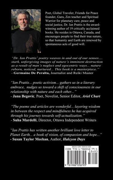 This book raises the fundamental issues of peace, climate change, Coronavirus pandemic, respect for nature, and the survival of our species deserves public attention. Ian Prattis, retired anthropology professor in Canada's capital Ottawa, Guru in India, Zen teacher, Founder of Friends of Peace, and award winning author attempts just that. He does it by combining nonfiction with poetry (an innovation in itself), shows us how to set a moral example to our children, uses metaphors of kindness to make good things happen spontaneously, and gives us the tools of dealing with stress and burnout. All this was done by a mature man who once befriended a wolf as a pet, met with female shamans, and went to India for two years of training with wisdom people. With a gentle smile, he invites us to walk carefully as we breathe in and out in search of peace, healing and mental health. - Professor Koozma J. Tarasoff