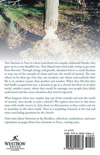 Four Summits to Truce is a short read about two couples, dedicated friends, who grew up in a very dreadful tree. They blazed some hard trails, trying to get away from that tree. Through change and growth, situations led to a crucial decision to step out of the tornado of chaos and into the world of normal. The tree refuses to let them go. One day, one incident, one choice and suddenly their life is on another course, then another and another. When they felt that they had finally escaped that tree, a decision to go to a church led them to an alien world, another course, where they would be amongst new people they didn't understand and face more situations that weren't expected. What happens when two couples step out of the tornado and join the world of normal, then decide to join a church? We explore that here in this short story with truths woven in. Join them on this journey as they evolve and try to assimilate to this alien world. There is a surprising character at the end and some concluding questions for the church. Don't miss Quiet Moments at the Boulders, reflections, meditations, and some expansions on pages from Four Summits to Truce, coming soon.
