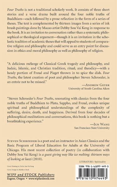 Four Truths is not a traditional scholarly work. It consists of three short stories and a verse drama built around the four noble truths of Buddhism--each followed by a prose reflection in the form of a series of theses. The text is complemented by thirteen images from a series of ink brush paintings done by Macao artist Debby Sou Vai Keng in response to the book. It is an invitation to conversation rather than a systematic philosophical or theological argument--though it is an invitation in the scholastic tradition of academic theses that will appeal to students of comparative religion and philosophy and could serve as an entry point for discussion in ethics and moral philosophy as well as philosophy of religion.