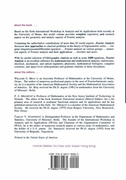 WILLIAM O. Bray is an Associate Professor of Mathematics at the University of Maine, Orono. The author of numerous professional papers in the area of Fourier/harmonic analysis, he is a member of the American Mathematical Society and the Mathematical Association of America. Dr. Bray received the Ph.D. degree (1981) in mathematics from the University of Missouri-Rolla. P. S. MILOJEVIC is Professor of Mathematics at the New Jersey Institute of Technology in Newark. The editor of the book Nonlinear Functional Analysis (Marcel Dekker, Inc.), his primary area of research is nonlinear functional analysis and its applications and he has published extensively in this field. Dr. Milojevic is a member of the American Mathematical Society. He received the Ph.D. degree (1975) from Rutgers University, New Brunswick, New Jersey. CASLAV V. STANOJEVIC is Distinguished Professor in the Department of Mathematics and Statistics, University of Missouri-Rolla. The founder of the International Workshop in Analysis and its Applications (IWAA) and Chairman of the Organization Committee of IWAA, he is the author of numerous research papers in various areas of mathematics, and the holder of a U.S. patent. Dr. Stanojevic received the Ph.D. degree (1955) from the University of Belgrade, Yugoslavia.