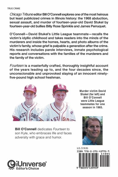 Chicago Tribune editor Bill O'Connell O'Connell explores one of the most heinous but least publicized crimes in Illinois history: the 1968 abduction, sexual assault, and murder of fourteen-year-old David Stukel by fourteen-year-old bullies Billy Rose Sprinkle and James Perruquet. O'Connell-David Stukel's Little League teammate-recalls the victim's idyllic childhood and takes readers into the minds of the murderers and inside the homes, hearts, and photo albums of the victim's family, whose grief is palpable a generation after the crime. His research includes parole interviews, inmate psychological reports and conversations with the families of the murderers and the family of the victim. Fourteen is a masterfully crafted, thoroughly insightful account of the years leading up to, and the four decades since, the unconscionable and unprovoked slaying of an innocent ninety-five-pound high school freshman.