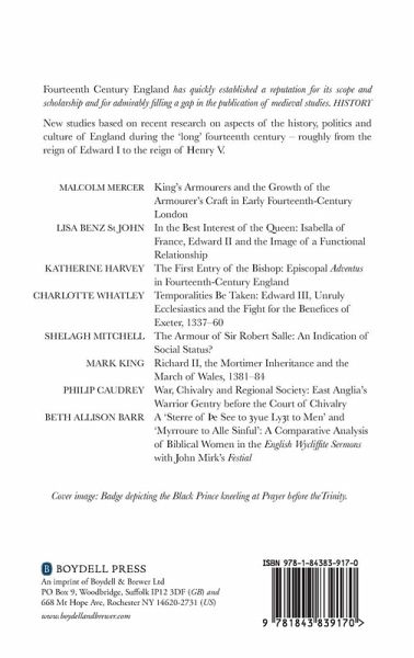 Drawing on a diverse range of documentary, literary and material evidence, the contributors to this volume examine several inter-related topics on political, social and cultural matters in late medieval England. Aspects of both arms production and armigerous society are explored, from the emergence of royal armourers in the early fourteenth century to the social implications of later armour and armorial bearings. Another major focus is the church and religion more broadly. The nature and significance of the ceremonial entry, the adventus, of bishops is explored, as well as the legal impact of provisions in shaping church-state relations in mid-century. Religious constructs of women are considered in a comparative analysis of orthodox and Lollard texts. Finally, a group of papers looks at aspects of politics at the centre, with an examination of the queenship of Isabella of France and the issue of the Mortimer inheritance in the early years of Richard II.