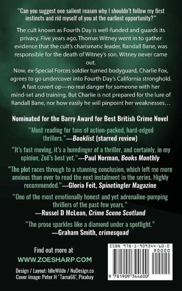 FOURTH DAY is #08 in Zoe Sharp's highly acclaimed and award-winning Charlie Fox crime thriller series. 'Getting into a dangerous cult can be harder than getting out...' Barry Award nominee.