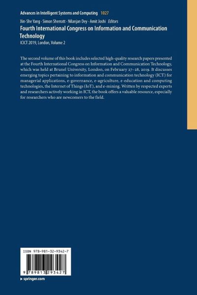 The second volume of this book includes selected high-quality research papers presented at the Fourth International Congress on Information and Communication Technology, which was held at Brunel University, London, on February 27-28, 2019. It discusses emerging topics pertaining to information and communication technology (ICT) for managerial applications, e-governance, e-agriculture, e-education and computing technologies, the Internet of Things (IoT), and e-mining. Written by respected experts and researchers actively working in ICT, the book offers a valuable resource, especially for researchers who are newcomers to the field.