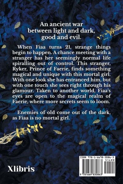 An ancient war between light and dark, good and evil. When Fiaa turns 21, strange things begin to happen. A chance meeting with a stranger has her seemingly normal life spiralling out of control. This stranger, Ryker, Prince of Faeire, finds something magical and unique with this mortal girl. With one look she has entranced him, but with one touch she sees right through his glamour. Taken to another world, Fiaa's eyes are open to the magical realm of Faerie, where more secrets seem to loom. Enemies of old come out of the dark, as Fiaa is no mortal girl.