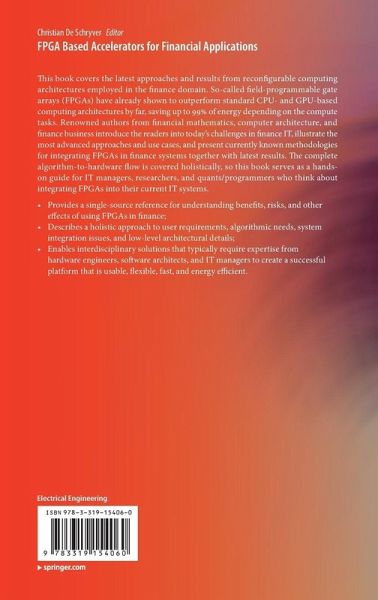 This book covers the latest approaches and results from reconfigurable computing architectures employed in the finance domain. So-called field-programmable gate arrays (FPGAs) have already shown to outperform standard CPU- and GPU-based computing architectures by far, saving up to 99% of energy depending on the compute tasks. Renowned authors from financial mathematics, computer architecture and finance business introduce the readers into today's challenges in finance IT, illustrate the most advanced approaches and use cases and present currently known methodologies for integrating FPGAs in finance systems together with latest results. The complete algorithm-to-hardware flow is covered holistically, so this book serves as a hands-on guide for IT managers, researchers and quants/programmers who think about integrating FPGAs into their current IT systems.