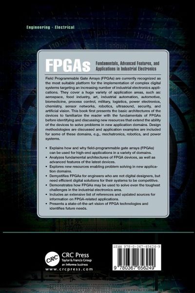 Field Programmable Gate Arrays (FPGAs) are currently recognized as the most suitable platform for the implementation of complex digital systems targeting an increasing number of industrial electronics applications. They cover a huge variety of application areas, such as: aerospace, food industry, art, industrial automation, automotive, biomedicine, process control, military, logistics, power electronics, chemistry, sensor networks, robotics, ultrasound, security, and artificial vision. This book first presents the basic architectures of the devices to familiarize the reader with the fundamentals of FPGAs before identifying and discussing new resources that extend the ability of the devices to solve problems in new application domains. Design methodologies are discussed and application examples are included for some of these domains, e.g., mechatronics, robotics, and power systems.