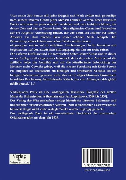 Die äußeren Einflüsse und die technischen Seiten seiner Kunst sind in dieser neuen Auflage weit eingehender behandelt als in der ersten. Auch ist auf die zeitliche Folge der Gemälde und auf die künstlerische Entwicklung des Meisters mehr Gewicht gelegt, weil die neuere Forschung mit Recht betont, Fra Angelico sei ebensosehr ein fleißiger und strebsamer Künstler als ein heiliger Ordensmann gewesen, nicht aber ein in abgeschlossener Einsamkeit, in ruhiger Beschauung dahinlebender Mönch, der von Anfang an sich gleich geblieben sei." [...]