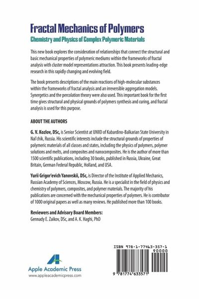 This new book explores the consideration of relationships that connect the structural and basic mechanical properties of polymeric mediums within the frameworks of fractal analysis with cluster model representations attraction. Incidentally, the choice of any structural model of medium or their combinations is defined by expediency and further usage convenience only. This book presents leading-edge research in this rapidly changing and evolving field. The book presents descriptions of the main reactions of high-molecular substances within the frameworks of fractal analysis and irreversible aggregation models. Synergetics and percolation theory were also used. In spite of the enormous number of papers dealing with the influence of the medium on the rate of chemical reactions (including synthesis of polymers), no strict quantitative theory capable of "universal" application has been put forward up until now. It is now possible to describe the relationship between the reaction rate constants and the equilibrium constants with the nature of the medium in which the reactions take place by means of a single equation. This important book for the first time gives structural and physical grounds of polymers synthesis and curing, and the fractal analysis is used for this purpose. This new book: ¿ Highlights some important areas of current interest in polymer products and chemical processes ¿ Focuses on topics with more advanced methods ¿ Emphasizes precise mathematical development and actual experimental details ¿ Analyzes theories to formulate and prove the physicochemical principles ¿ Provides an up-to-date and thorough exposition of the present state of the art of complex polymeric materials