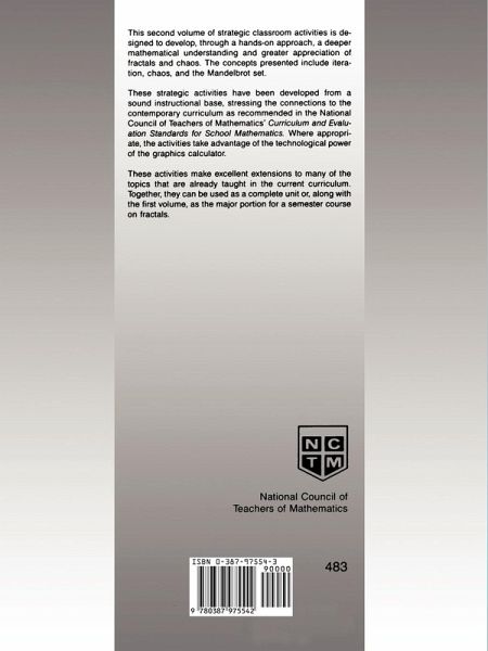 The same factors that motivated the writing of our first volume of strategic activities on fractals continued to encourage the assembly of additional activities for this second volume. Fractals provide a setting wherein students can enjoy hands-on experiences that involve important mathematical content connected to a wide range of physical and social phenomena. The striking graphic images, unexpected geometric properties, and fascinating numerical processes offer unparalleled opportunity for enthusiastic student inquiry. Students sense the vigor present in the growing and highly integrative discipline of fractal geom etry as they are introduced to mathematical developments that have occurred during the last half of the twentieth century. Few branches of mathematics and computer science offer such a contem porary portrayal of the wonderment available in careful analysis, in the amazing dialogue between numeric and geometric processes, and in the energetic interaction between mathematics and other disciplines. Fractals continue to supply an uncommon setting for animated teaching and learn ing activities that focus upon fundamental mathematical concepts, connections, problem-solving techniques, and many other major topics of elementary and advanced mathematics. It remains our hope that, through this second volume of strategic activities, readers will find their enjoyment of mathematics heightened and their appreciation for the dynamics of the world in creased. We want experiences with fractals to enliven curiosity and to stretch the imagination.
