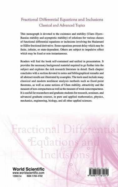 This monograph is devoted to the existence and stability (Ulam-Hyers-Rassias stability and asymptotic stability) of solutions for various classes of functional differential equations or inclusions involving the Hadamard or Hilfer fractional derivative. Some equations present delay which may be finite, infinite, or state-dependent. Others are subject to impulsive effect which may be fixed or non-instantaneous. Readers will find the book self-contained and unified in presentation. It provides the necessary background material required to go further into the subject and explores the rich research literature in detail. Each chapter concludes with a section devoted to notes and bibliographical remarks and all abstract results are illustrated by examples. The tools used include many classical and modern nonlinear analysis methods such as fixed-point theorems, as well as some notions of Ulam stability, attractivity and the measure of non-compactness as well as the measure of weak noncompactness. It is useful for researchers and graduate students for research, seminars, and advanced graduate courses, in pure and applied mathematics, physics, mechanics, engineering, biology, and all other applied sciences.