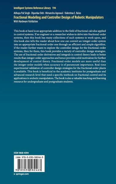 This book at hand is an appropriate addition to the field of fractional calculus applied to control systems. If an engineer or a researcher wishes to delve into fractional-order systems, then this book has many collections of such systems to work upon, and this book also tells the reader about how one can convert an integer-order system into an appropriate fractional-order one through an efficient and simple algorithm. If the reader further wants to explore the controller design for the fractional-order systems, then for them, this book provides a variety of controller design strategies. The use of fractional-order derivatives and integrals in control theory leads to better results than integer-order approaches and hence provides solid motivation for further development of control theory. Fractional-order models are more useful than the integer-order models when accuracy is of paramount importance. Real-time experimental validation of controller design strategies for the fractional-order plants is available. This book is beneficial to the academic institutes for postgraduate and advanced research-level that need a specific textbook on fractional control and its applications in srobotic manipulators. The book is also a valuable teaching and learning resource for undergraduate and postgraduate students.