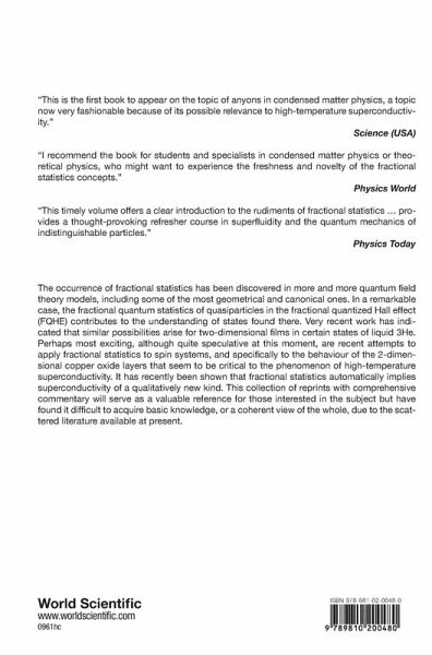 The occurrence of fractional statistics has been discovered in more and more quantum field theory models, including some of the most geometrical and canonical ones. In a remarkable case, the fractional quantum statistics of quasiparticles in the fractional quantized Hall effect (FQHE) contributes to the understanding of states found there. Very recent work has indicated that similar possibilities arise for two-dimensional films in certain states of liquid 3He. Perhaps most exciting, although quite speculative at this moment, are recent attempts to apply fractional statistics to spin systems, and specifically to the behaviour of the 2-dimensional copper oxide layers that seem to be critical to the phenomenon of high-temperature superconductivity. It has recently been shown that fractional statistics automatically implies superconductivity of a qualitatively new kind. This collection of reprints with comprehensive commentary will serve as a valuable reference for those interested in the subject but have found it difficult to acquire basic knowledge, or a coherent view of the whole, due to the scattered literature available at present.