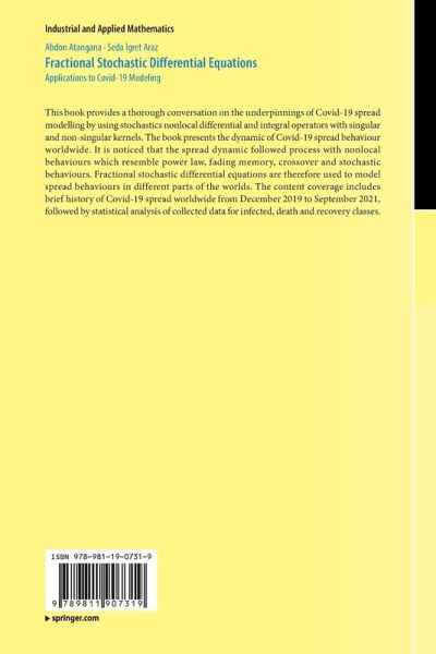 "The book promotes the use of stochastic fractional differential models to describe infectious disease propagation, particularly the spread of COVID-19 ... . This is primary a research book, most of the results included therein being obtained by the authors themselves and presented for the first time in book form." (Paul Georgescu, zbMATH 1497.92002, 2022)