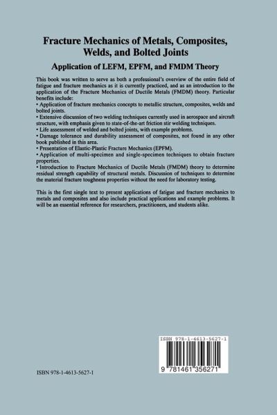 Chapter1 Overview of Fracture Mechanics and Failure Prevention.- 1.0 Introduction.- 1.1 High Cycle Fatigue.- 1.2 Low Cycle Fatigue.- 1.3 Stress and Strain at Notch (Neuber Relationship).- 1.4 Linear Elastic Fracture Mechanics (LEFM) and Applications.- 1.5 Elastic-Plastic Fracture Mechanics (EPFM).- 1.6 Failure Prevention and Fracture Control Plan.- References.- Chapter2 Linear Elastic Fracture Mechanics (LEFM) and Applications.- 2.0 Introduction to Elastic Fracture.- 2.1 Griffith Theory of Elastic Fracture.- 2.2 The Stress Intensity Factor Approach, K.- 2.3 Fracture Toughness.- 2.4 Material Anisotropy and its Effect on Fracture Toughness.- 2.5 Factors Affecting Fracture Toughness.- 2.6 Residual Strength Capability of a Cracked Structure.- 2.7 Plasticity at the Crack Tip within Small Scale Yielding.- 2.8 Surface or Part Through Cracks.- 2.9 A Brief Description of ASTM Fracture Toughness Testing.- References.- Chapter3 Fatigue Crack Growth and Applications.- 3.1 Introduction.- 3.2 Crack Growth Rate Empirical Descriptions.- 3.3 Stress Ratio and Crack Closure Effect.- 3.4 Variable Amplitude Stress and the Retardation Phenomenon.- 3.5 Cycle by Cycle Fatigue Crack Growth Analysis.- 3.6 Environmental Assisted Corrosion Cracking.- References.- Chapter4 Elastic-Plastic Fracture Mechanics (EPFM) and Applications.- 4.0 Overview.- 4.1 Introduction.- 4.2 Introduction to Griffith Energy Balance Approach.- 4.3 The Path Independent J- Integral and its Application.- 4.4 Comments Concerning the Path Independent J-Integral Concept.- 4.5 J-Controlled Concept and Stable Crack Growth.- 4.6 Experimental Evaluation of J-Integral and JIC Testing.- 4.7 Determination of JIC Value Based on a Singie Specimen Test.- References.- Chapter5 The Fracture Mechanics of Ductile Metals Theory.- 5.0 Introduction.- 5.1 The Extended Griffith Theory.- 5.2 Fracture Mechanics Of Ductile Metals (FMDM).- 5.3 Determination of g1 = ?UF/?c Term.- 5.4 Determination of the g2= ?UU/?c Term.- 5.5 Octahedral Shear Stress Theory (Plane Strain Conditions).- 5.6 Applied Stress, ?, and Half Crack Length, c, Relationship.- 5.7 Mixed Mode Fracture and Thickness Parameters.- 5.8 The Stress-Strain Curve.- 5.9 Verification of FMDM Results with the Experimental Data.- 5.10 Fracture Toughness Computation by the FMDM Theory.- References.- Chapter6 Welded Joints and Applications.- 6.0 Introduction.- 6.1 Welding of Aluminum Alloys.- 6.2 Variable Polarity Plasma Arc (VPPA).- 6.3 Friction Stir Welding (FSW).- 6.4 Summary.- References.- Chapter7 Bolted Joints and Applications.- 7.1 Introduction.- 7.2 Bolted Joint Subjected to Cyclic Loading.- 7.3 Bolt Preload.- 7.4 Fatigue Crack Growth Analysis of Pads in a Bolted Joint.- 7.5 Riveted Joints.- 7.6 Material Anisotropy and its Application in Bolt Analysis.- References.- Chapter8 Durability and Damage Tolerance of Composites.- 8.1 Overview of Composite.- 8.2 Overview of Textiles Composites.- 8.3 Progressive Fracture Methodology.- 8.4 Composite Structural Analysis and Input and Output.- 8.5 Conclusions.- References.- Appendix A.
