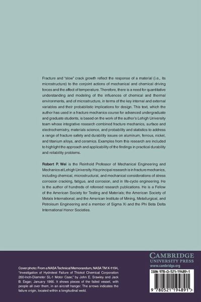 This text is based on the work of the author's Lehigh University team whose integrative research combined fracture mechanics, surface and electrochemistry, materials science, and probability and statistics to address a range of fracture safety and durability issues on aluminum, ferrous, nickel, and titanium alloys and ceramics.