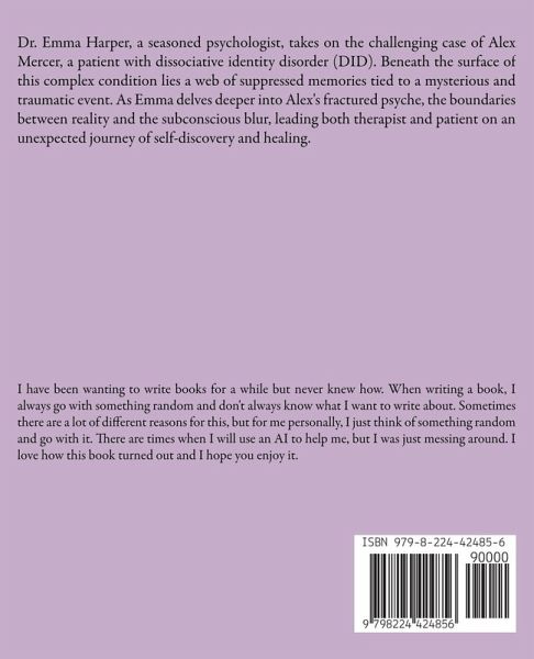 Dr. Emma Harper, a seasoned psychologist, takes on the challenging case of Alex Mercer, a patient with dissociative identity disorder (DID). Beneath the surface of this complex condition lies a web of suppressed memories tied to a mysterious and traumatic event. As Emma delves deeper into Alex's fractured psyche, the boundaries between reality and the subconscious blur, leading both therapist and patient on an unexpected journey of self-discovery and healing.