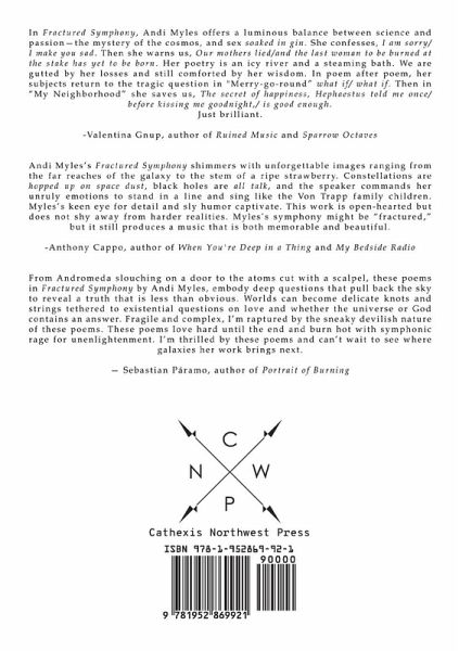 Debut poetry collection by Andi Myles. Andi Myles is a Washington DC area science writer by day, poet in the in between times. Her favorite space is the fine line between essay and poetry. Her work has appeared in Rattle, Tahoma Literary Review, and B O D Y, among others. You can find her at www.andimyles.com.
