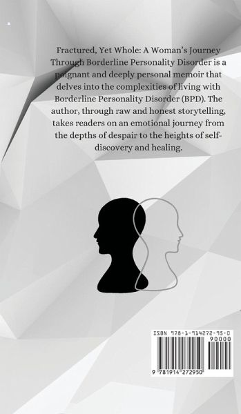 Fractured, Yet Whole: A Woman's Journey Through Borderline Personality Disorder is a poignant and deeply personal memoir that delves into the complexities of living with Borderline Personality Disorder (BPD). The author, through raw and honest storytelling, takes readers on an emotional journey from the depths of despair to the heights of self-discovery and healing. In this book, you will find: Intimate Reflections: The author shares her struggles with identity, relationships, and self-worth, offering a window into the daily battles faced by those with BPD. Moments of Triumph: Despite the challenges, the narrative is filled with moments of resilience and breakthroughs, highlighting the strength and determination required to navigate life with BPD. Insightful Perspectives: The memoir provides valuable insights into the therapeutic processes and coping mechanisms that have helped the author manage her condition. A Message of Hope: Ultimately, this book is a testament to the possibility of healing and finding wholeness, even when life feels fractured. Fractured, Yet Whole is not just a story of struggle, but a celebration of the human spirit's capacity to overcome and thrive. Whether you are personally affected by BPD, know someone who is, or simply seek to understand the condition better, this book offers a compelling and compassionate narrative that will resonate with readers from all walks of life.