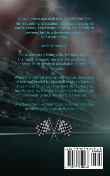 Rookie driver Marshall Kerr had the world at his feet until one accident fractured his dreams and his body. Forced into rehab in the middle of nowhere, he's in a downward spiral of self-destruction. Until he meets E. Eloise Masters is living a lie. Terrified and on the run, she guards her identity as closely as her heart. Both of which Marshall is determined to conquer. When the past catches up with Eloise, the pieces of her soul healed by Marshall begin to fracture once more. Only this time, she's not alone. She has Marshall by her side to give her the strength she needs to face her demons head-on. Are they strong enough to survive this collision, or will they fracture on final impact? NOTE ... this was previously published as part of K. Bromberg's Driven World. The story has been slightly altered so it no longer has any link to the Driven world or it's characters.
