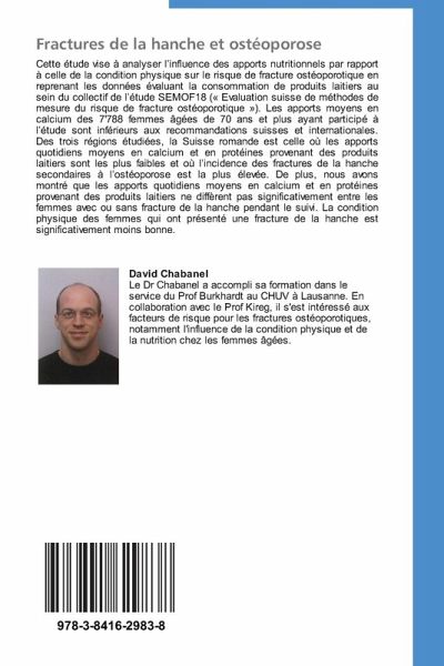Cette étude vise à analyser l influence des apports nutritionnels par rapport à celle de la condition physique sur le risque de fracture ostéoporotique en reprenant les données évaluant la consommation de produits laitiers au sein du collectif de l étude SEMOF18 (" Evaluation suisse de méthodes de mesure du risque de fracture ostéoporotique "). Les apports moyens en calcium des 7'788 femmes âgées de 70 ans et plus ayant participé à l étude sont inférieurs aux recommandations suisses et internationales. Des trois régions étudiées, la Suisse romande est celle où les apports quotidiens moyens en calcium et en protéines provenant des produits laitiers sont les plus faibles et où l incidence des fractures de la hanche secondaires à l ostéoporose est la plus élevée. De plus, nous avons montré que les apports quotidiens moyens en calcium et en protéines provenant des produits laitiers ne diffèrent pas significativement entre les femmes avec ou sans fracture de la hanche pendant le suivi. La condition physique des femmes qui ont présenté une fracture de la hanche est significativement moins bonne.
