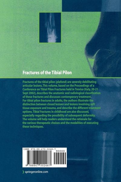 Fractures of the tibial pilon (plafond) represent some of the most invalidating articular lesions. This volume describes the anatomic and radiological classification of these fractures and discusses contemporary treatments. For tibial pilon fractures in adults, the authors illustrate the distinction between closed lesions and lesions involving soft tissue exposure and trauma, and describe the different options. Tibial fractures in childhood are also discussed, especially regarding the possibility of subsequent deformity. The volume will help readers understand the rationale for the various therapeutic choices as well as the modalities of executing these techniques.