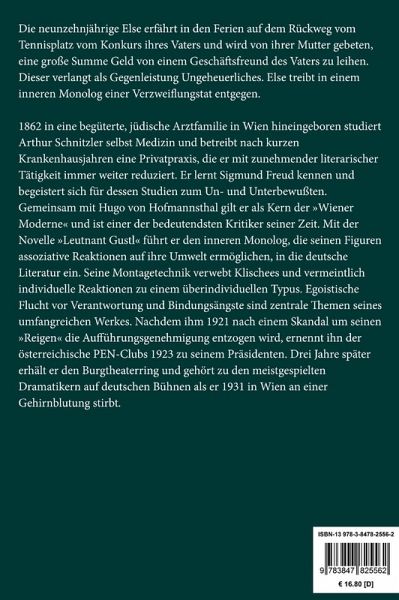 Arthur Schnitzler: Fräulein Else Lesefreundlicher Großdruck in 16-pt-Schrift Die neunzehnjährige Else erfährt in den Ferien auf dem Rückweg vom Tennisplatz vom Konkurs ihres Vaters und wird von ihrer Mutter gebeten, eine große Summe Geld von einem Geschäftsfreund des Vaters zu leihen. Dieser verlangt als Gegenleistung Ungeheuerliches. Else treibt in einem inneren Monolog einer Verzweiflungstat entgegen. Großformat, 210 x 297 mm Berliner Ausgabe, 2019 Durchgesehener Neusatz mit einer Biographie des Autors bearbeitet und eingerichtet von Theodor Borken Erstdruck: Die Neue Rundschau, XXXV. Jahrgang, 10. Heft, Oktober 1924. Textgrundlage ist die Ausgabe: Arthur Schnitzler: Gesammelte Werke. Die erzählenden Schriften, 2 Bände, Frankfurt a.M.: S. Fischer Verlag, 1961. Umschlaggestaltung von Thomas Schultz-Overhage. Gesetzt aus der Minion Pro, 16 pt. Über den Autor: 1862 in eine begüterte, jüdische Arztfamilie in Wien hineingeboren studiert Arthur Schnitzler selbst Medizin und betreibt nach kurzen Krankenhausjahren eine Privatpraxis, die er mit zunehmender literarischer Tätigkeit immer weiter reduziert. Er lernt Sigmund Freud kennen und begeistert sich für dessen Studien zum Un- und Unterbewußten. Gemeinsam mit Hugo von Hofmannsthal gilt er als Kern der »Wiener Moderne« und ist einer der bedeutendsten Kritiker seiner Zeit. Mit der Novelle »Leutnant Gustl« führt er den inneren Monolog, die seinen Figuren assoziative Reaktionen auf ihre Umwelt ermöglichen, in die deutsche Literatur ein. Seine Montagetechnik verwebt Klischees und vermeintlich individuelle Reaktionen zu einem überindividuellen Typus. Egoistische Flucht vor Verantwortung und Bindungsängste sind zentrale Themen seines umfangreichen Werkes. Nachdem ihm 1921 nach einem Skandal um seinen »Reigen« die Aufführungsgenehmigung entzogen wird, ernennt ihn der österreichische PEN-Clubs 1923 zu seinem Präsidenten. Drei Jahre später erhält er den Burgtheaterring und gehört zu den meistgespielten Dramatikern auf deutschen Bühnen als er 1931 in Wien an einer Gehirnblutung stirbt.