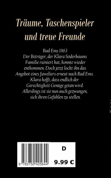 Bad Ems 1863.Immer wieder konnte der Betrüger, der Klara Söderbaums Familie ruiniert hat, entkommen. Doch jetzt lockt ihn das Angebot eines Juweliers erneut nach Bad Ems. Einerseits hofft Klara, dass nun endlich der Gerechtigkeit Genüge getan wird, andererseits muss sie sich aber auch ihren Gefühlen gegenüber dem Mann, der sie liebt, stellen.Obwohl Klara inzwischen eine neue Schülerin hat, lassen die Probleme ihrer früheren Schützlinge und die Eskapaden deren Mutter sie nicht los.Außerdem muss noch die Frage beantwortet werden, was der Salonillusionist, dem die Bankiersgattin Rotherbruch verfallen ist, mit all dem zu tun hat.
