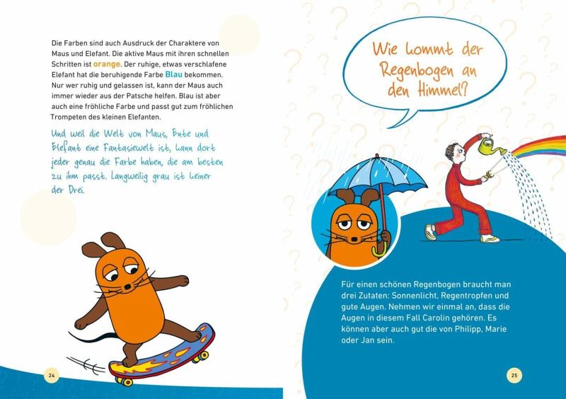 Kinder wollen es ganz genau wissen – und stellen ihre Fragen seit 50 Jahren am liebsten der Maus. Dieses Sachbuch bietet Antworten auf die meistgestellten Kinderfragen aus Alltag, Natur und Technik. Mit witzigen Illustrationen und erklärenden Fotos werden komplexe Zusammenhänge einfach, aber sachlich fundiert vermittelt.“