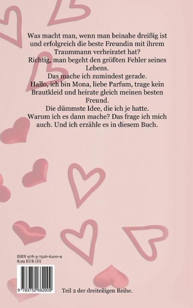 Was macht man, wenn man beinahe dreißig ist und erfolgreich die beste Freundin mit ihrem Traummann verheiratet hat?Richtig, man begeht den größten Fehler seines Lebens.Hallo, ich bin Mona, liebe Parfum, trage ein Brautkleid und heirate gleich meinen besten Freund.Die dümmste Idee, die ich je hatte.Warum ich es dann mache? Das frage ich mich auch. Und ich erzähle es in diesem Buch.