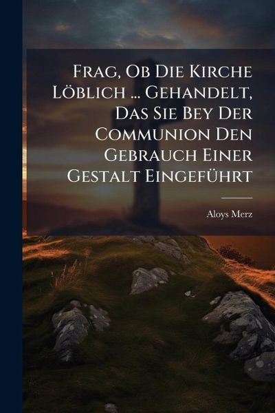 Explore the historical and theological considerations surrounding the introduction of specific practices within the Church during Communion in "Frag, Ob Die Kirche Löblich ... Gehandelt, Das Sie Bey Der Communion Den Gebrauch Einer Gestalt EingefÃ1/4hrt: Eine Predigt" by Aloys Merz. This sermon delves into the question of whether the Church acted commendably in establishing the use of a particular form or element during the sacrament of Communion. Merz's work offers insights into the historical context, theological debates, and rationale behind the evolution of liturgical practices. Readers interested in church history, sacramental theology, or the development of Christian traditions will find valuable perspectives within this discourse. This work has been selected by scholars as being culturally important, and is part of the knowledge base of civilization as we know it. This work was reproduced from the original artifact, and remains as true to the original work as possible. Therefore, you will see the original copyright references, library stamps (as most of these works have been housed in our most important libraries around the world), and other notations in the work. This work is in the public domain in the United States of America, and possibly other nations. Within the United States, you may freely copy and distribute this work, as no entity (individual or corporate) has a copyright on the body of the work. As a reproduction of a historical artifact, this work may contain missing or blurred pages, poor pictures, errant marks, etc. Scholars believe, and we concur, that this work is important enough to be preserved, reproduced, and made generally available to the public. We appreciate your support of the preservation process, and thank you for being an important part of keeping this knowledge alive and relevant.