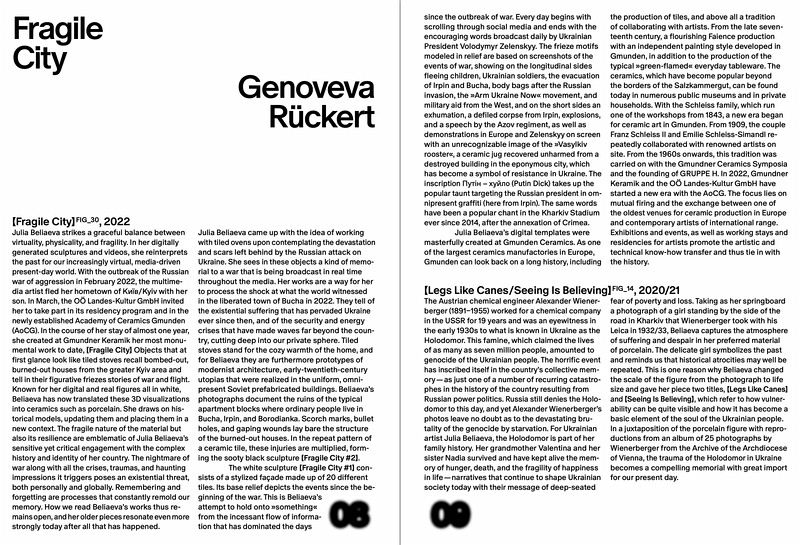 Beliaeva's most monumental work in porcelain to date, Fragile City, lends the exhibition in Linz and the publication its title. With writings by Kristina Borhes, Genoveva Rückert, and Alfred Weidinger.