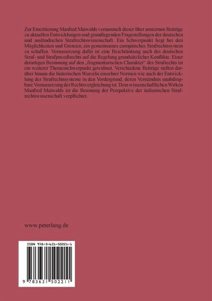 Zur Emeritierung Manfred Maiwalds versammelt dieser liber amicorum Beiträge zu aktuellen Entwicklungen und grundlegenden Fragestellungen der deutschen und ausländischen Strafrechtswissenschaft. Ein Schwerpunkt liegt bei den Möglichkeiten und Grenzen, ein gemeinsames europäisches Strafrechtssystem zu schaffen. Voraussetzung dafür ist eine Beschränkung auch des deutschen Straf- und Strafprozeßrechts auf die Regelung grundsätzlicher Konflikte. Einer derartigen Besinnung auf den "fragmentarischen Charakter" des Strafrechts ist ein weiterer Themenschwerpunkt gewidmet. Verschiedene Beiträge stellen darüber hinaus die historischen Wurzeln einzelner Normen wie auch der Entwicklung der Strafrechtssysteme in den Vordergrund, deren Verständnis unabdingbare Voraussetzung der Rechtsvergleichung ist. Dem wissenschaftlichen Wirken Manfred Maiwalds ist die Betonung der Perspektive der italienischen Strafrechtswissenschaft verpflichtet.