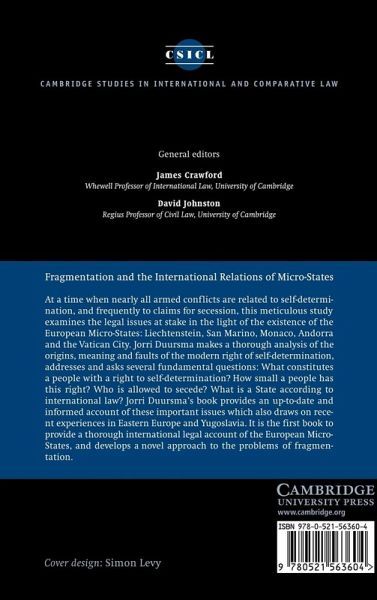 At a time when nearly all armed conflicts are related to self-determination, and frequently to claims for secession, this meticulous study examines the legal issues at stake in the light of the existence of European micro-States: Liechtenstein, San Marino, Monaco, Andorra and the Vatican City. Jorri Duursma makes a thorough analysis of the true origins, meaning and faults of the modern right of self-determination, asking fundamental questions: What constitutes a people with a right to self-determination? How small a people has this right? Who are allowed to secede? What is a state according to international law? Jorri Duursma's book provides an up-to-date and informed account of these important issues which also draws on recent experiences in Eastern Europe and Yugoslavia. It is the first book to provide a thorough international legal account of the European micro-states, and develops a novel approach to the problems of fragmentation.