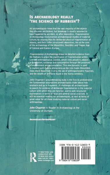 Fragmentation in Archaeology revolutionises archaeological studies of material culture, by arguing that the deliberate physical fragmentation of objects, and their (often structured) deposition, lies at the core of the archaeology of the Mesolithic, Neolithic and Copper Age of Central and Eastern Europe. John Chapman draws on detailed evidence from the Balkans to explain such phenomena as the mass sherd deposition in pits and the wealth of artefacts found in the Varna cemetery to place the significance of fragmentation within a broad anthropological context.